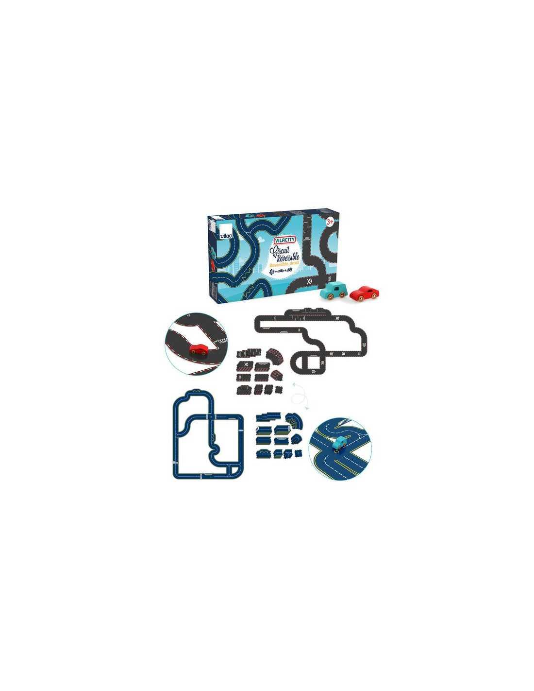 Venez découvrir le Circuit réversible vilacity 42 pièces et ses deux voitures de chez Vilac